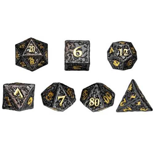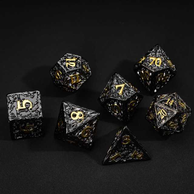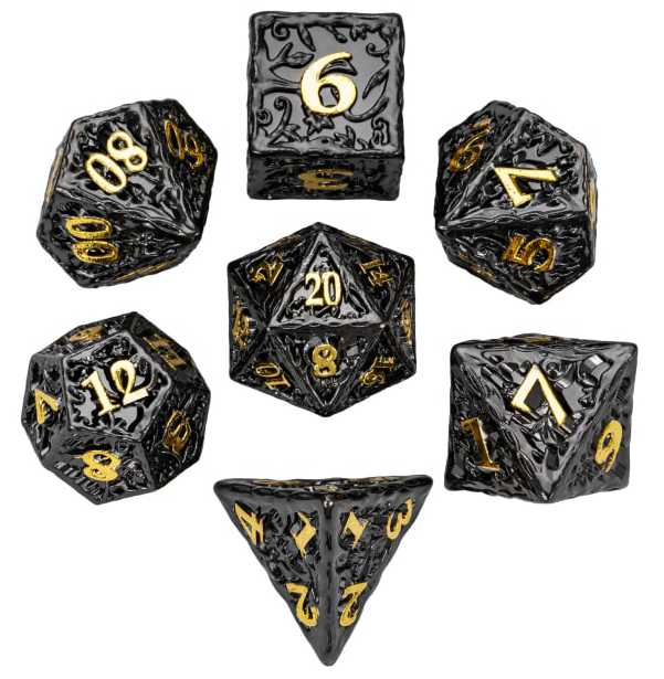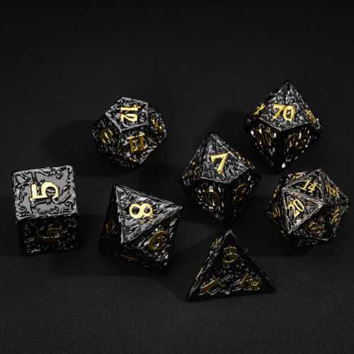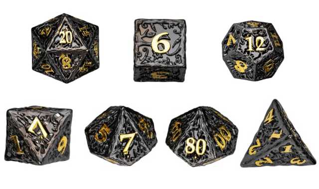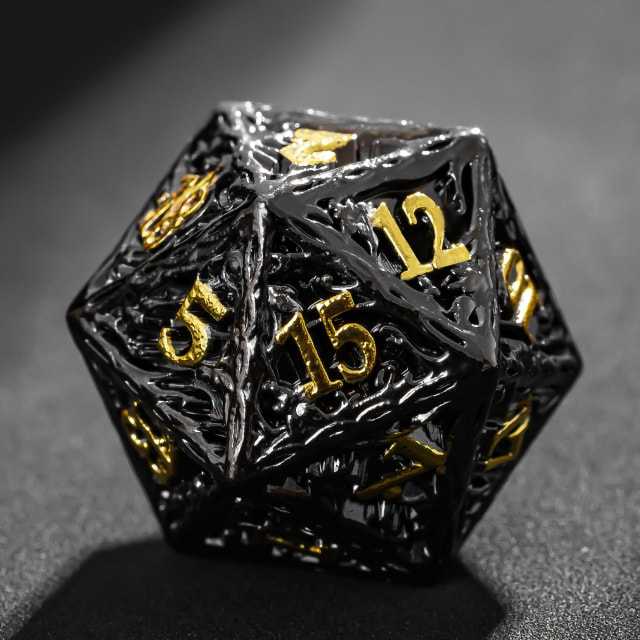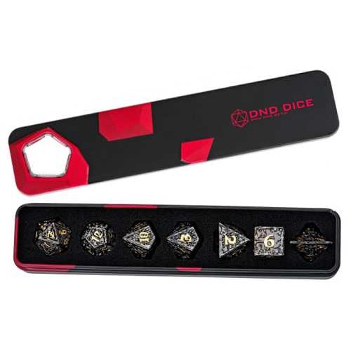 Upgrade je DND-spel met deze Zwart/Gouden Metalen Dobbelstenenset. De elegante zwarte afwerking met gouden details geeft deze dobbelstenen een krachtige en stijlvolle uitstraling die op elke tafel opvalt.